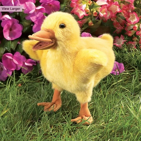 It’s a classic springtime sight, a line of fluffy yellow ducklings waddling after mom. Operate the beak and wings of this baby for a little springtime all year ’round. Duckling puppet measures 9-inches tall, is recommended for ages 3 and up. Does not stand alone as shown.