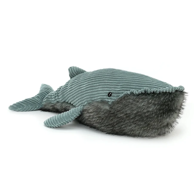 Talking of magnificent, Wiley Whale is a real sea celebrity! This aqua dandy has chunky cord fur and the fluffiest grey ombre underbelly! With a frill detail mouth and flappy fins, this gentle giant coasts through the ocean!