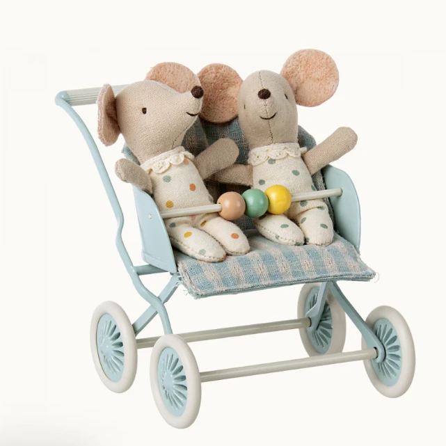 This stroller is perfect for mouse families with more than one baby. You can easily transport two or three babies. The seat can be positioned both ways depending on whether the babies like to look at mum and dad or are ready to discover the world.