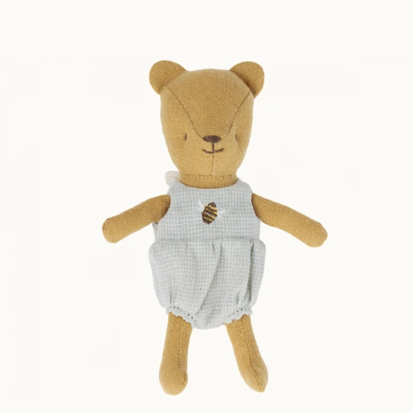 A baby has arrived to the teddy family. It is made in same soft linen fabric as the rest of the teddies, it comes dressed in a small suit with embroidery