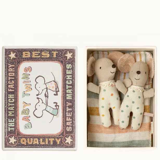 Maileg TWINS, BABY MICE IN MATCHBOX -POLKA DOTS