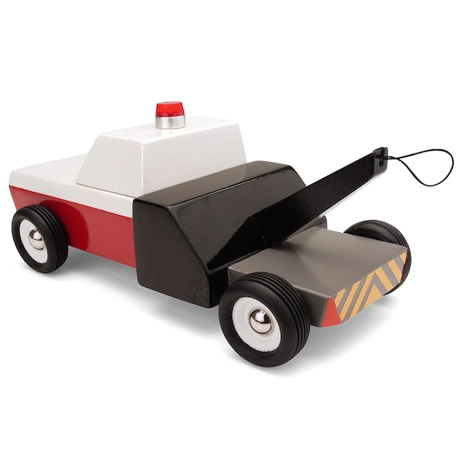 A staple of every garage, Towie is glad to jump to any car’s rescue. Sturdy, and ready to use its rubber band to help a car in need. It hooks to the underbelly button that all full size vehicle cars have, except Police Cruiser Firechief. Not for children under 3 years of age.