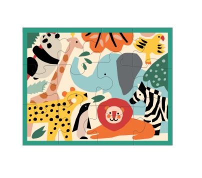 Put together a gang of exotic animals with this 12-piece puzzle from Mudpuppy. The Zoo Animals Pouch Puzzle features extra thick pieces perfect for small hands and is packaged in a secure, reusable pouch with ribbon edging and coordinating zipper for easy travel.